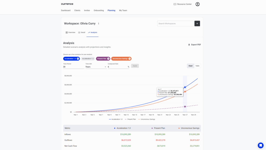 "Currence has allowed us to have very positive and enjoyable conversations with our clients. We're no longer trying to find a few dollars here and there to see how we can redeploy, but it's more of a conversation of, Hey, we've saved all this money, we're sitting on all this cash. Let's deploy it in a way that makes sense to you and your family."